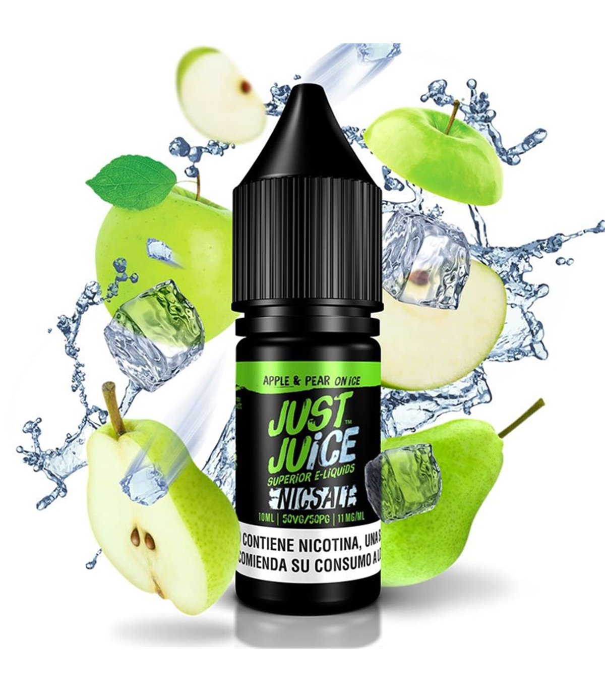 El líquido Apple & Pear on Ice de Just Juice Salts ofrece la perfecta combinación de la manzana y la pera, en un sabor delicioso que culmina con un toque justo de frescor que te recordará al delicioso sabor de la sidra fresca.