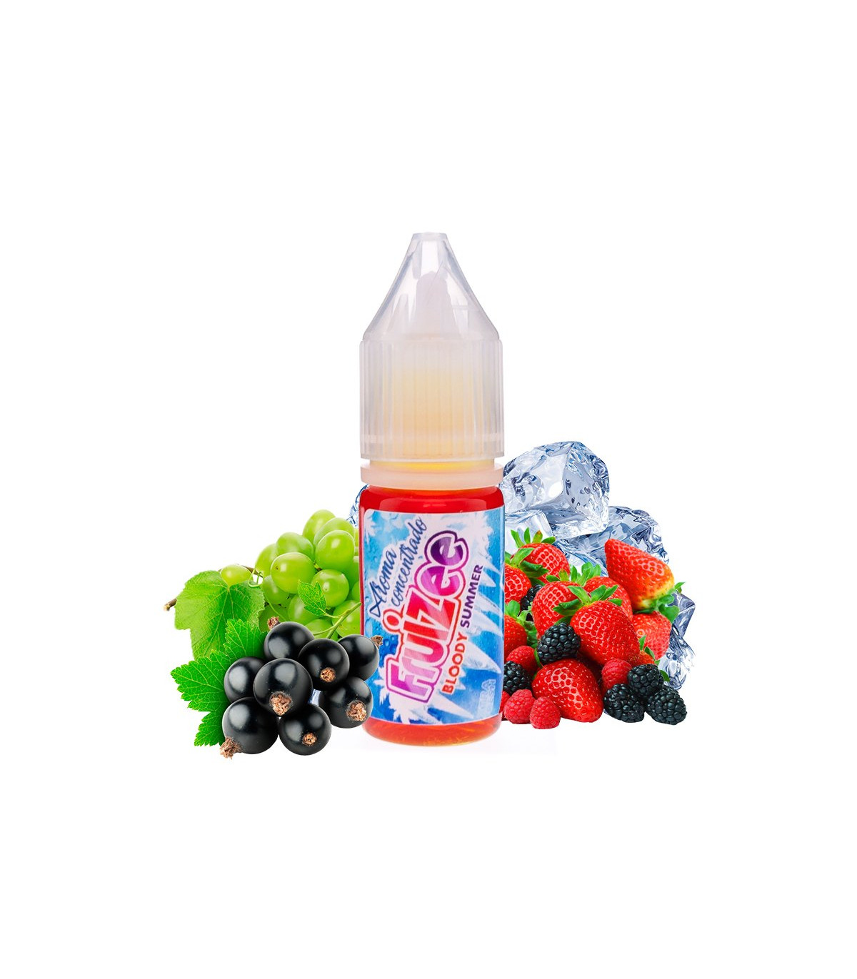 El aroma Bloody Summer de Fruizee ofrece una sabrosa e intensa mezcla frutal que combina frutos rojos, uva y grosella negra, sobre un toque de frescor.