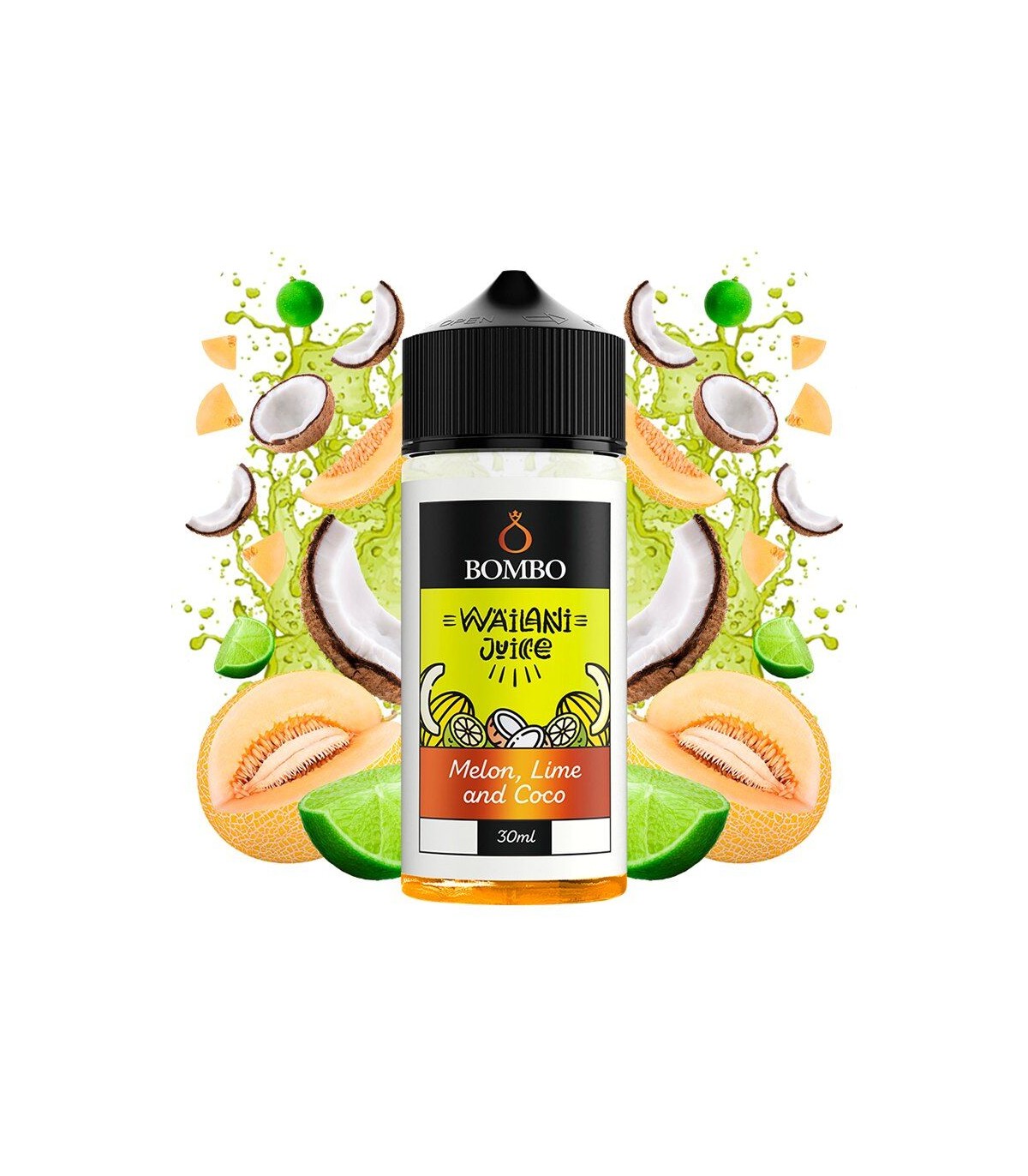 El aroma Melon, Lime and Coco en formato Longfill de Wailani Juice by Bombo ofrece un sabor exótico que combina la dulzura y jugosidad del melón, la frescura cítrica de la lima y el sedoso sabor del coco.