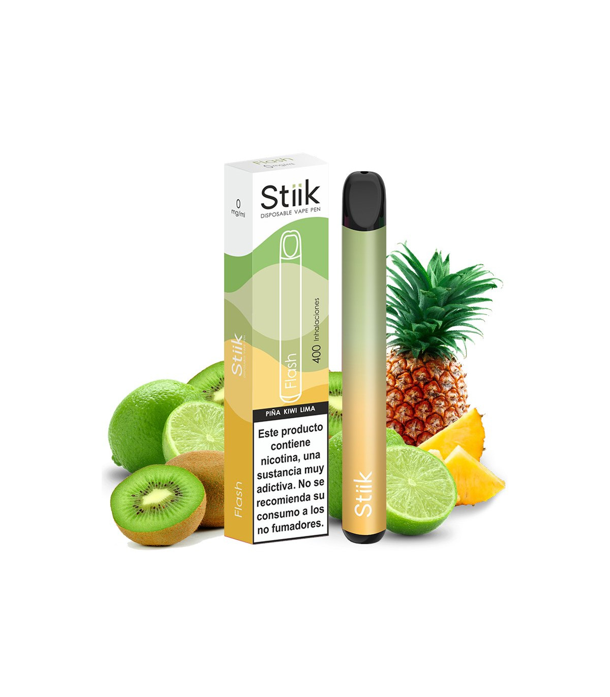 El pod desechable Flash de Stiik sorprende por su exquisito y original sabor que nace como resultado de la mezcla de la piña, el kiwi y la lima.
