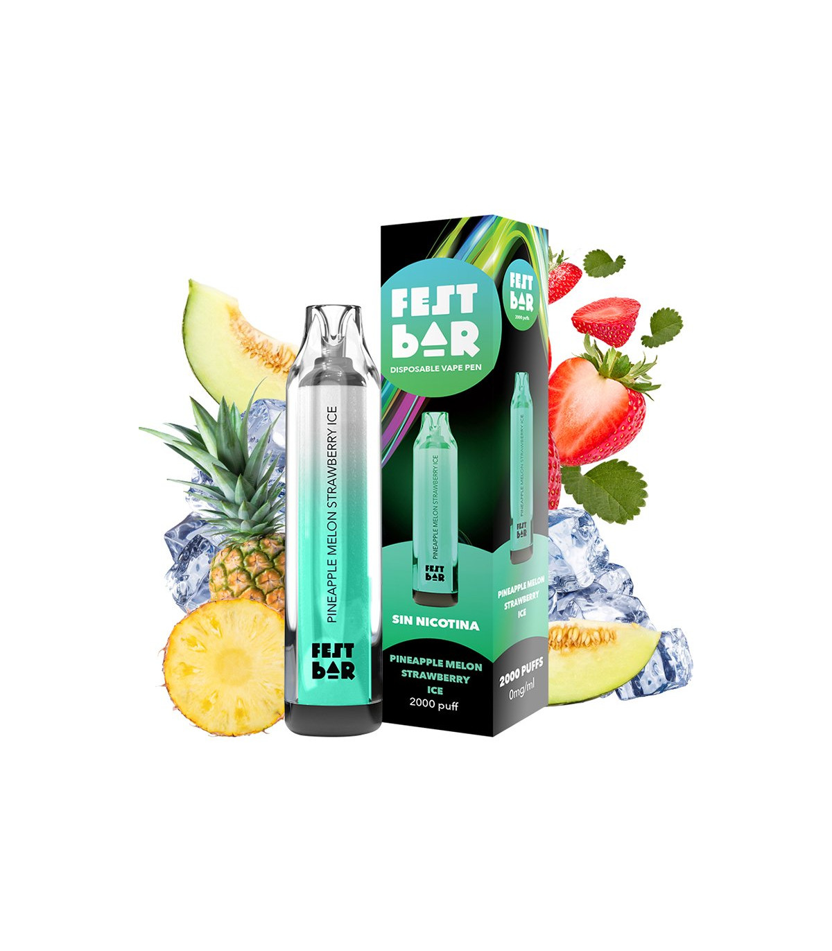 El pod desechable Pineapple Melon Strawberry Ice de Fest Bar conquista a los más exigentes por su sabor a piña madura con melón dulce y fresas.