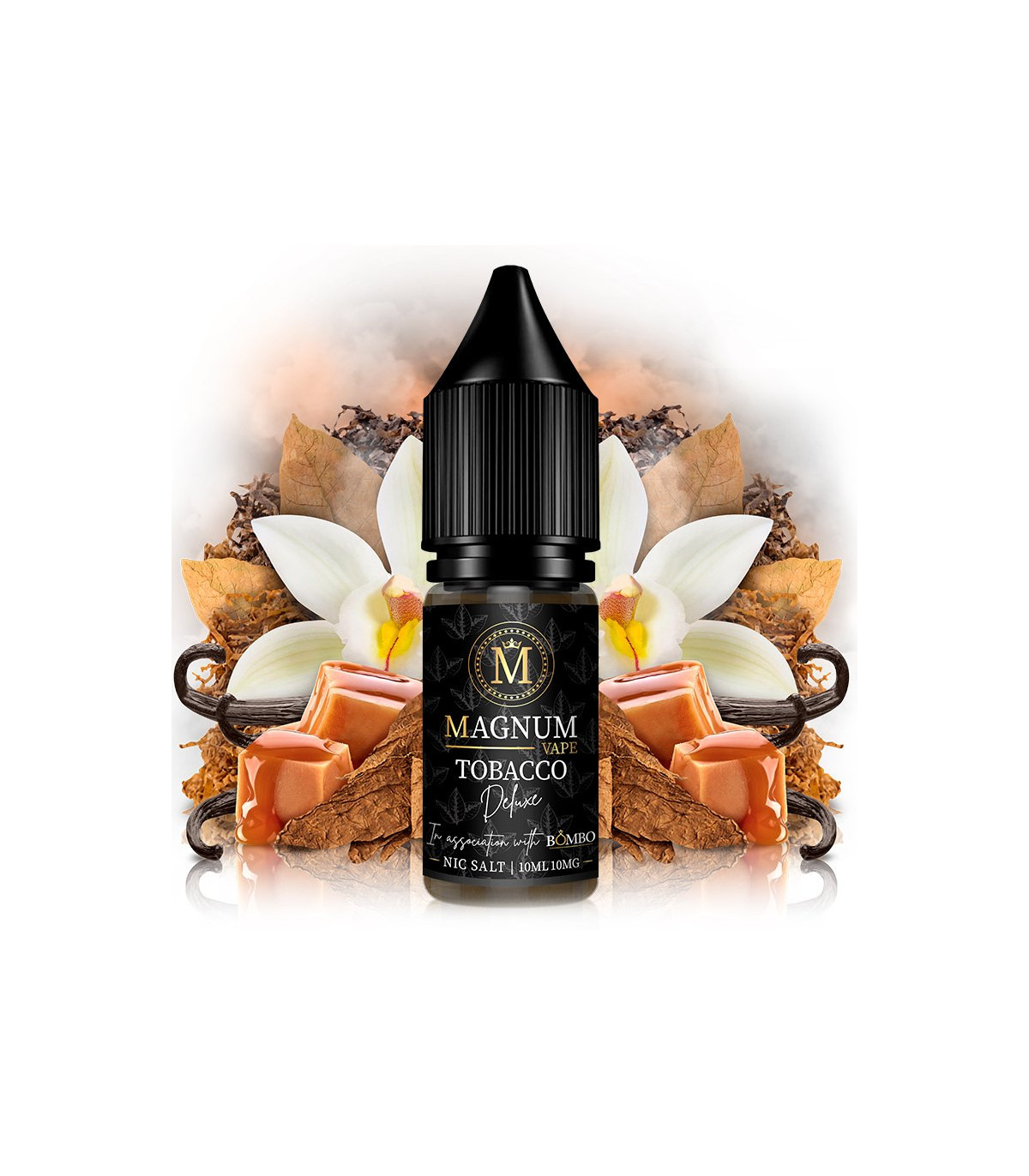 El líquido Tobacco Deluxe de Magnum Vape Nic Salts sabe a una selección de las mejores hojas de tabaco Virginia, suculenta vainilla de Madagascar, y un ténue caramelo tostado, para hacer de este eliquid un tabaquil de los que enamoran al paladar.